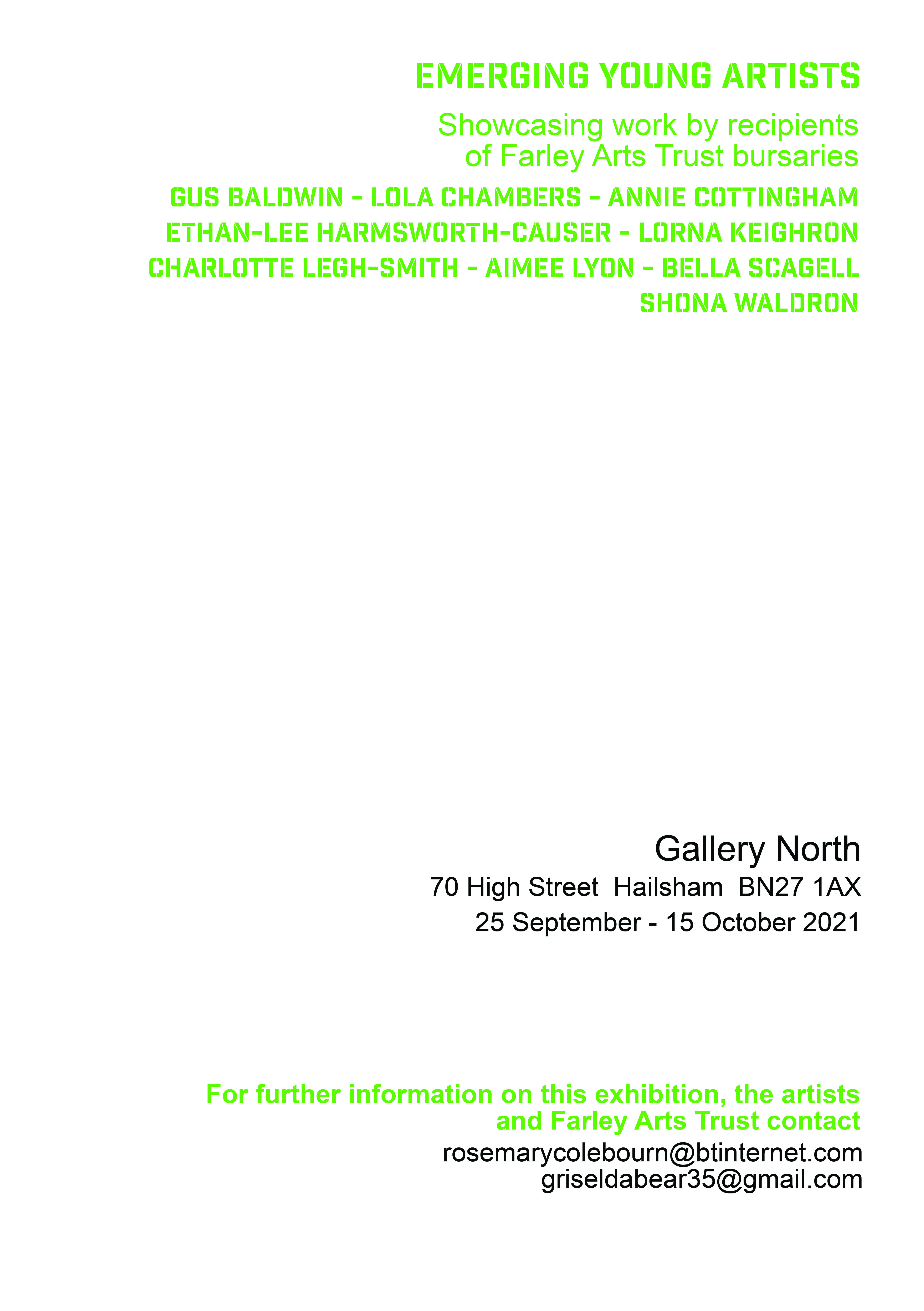 Many of the recipients of the bursaries continued to make art works during the pandemic and we organised an exhibition, Emerging Young Artists, showing new work by these artists at Gallery North in Hailsham in September/October 2021.